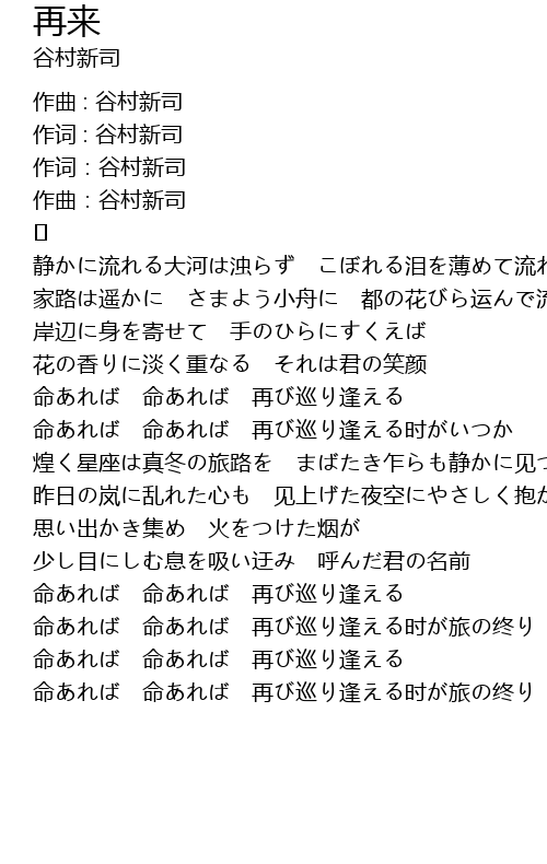 | 命あれば 命あれば 再び巡り逢える时が旅の终り | |