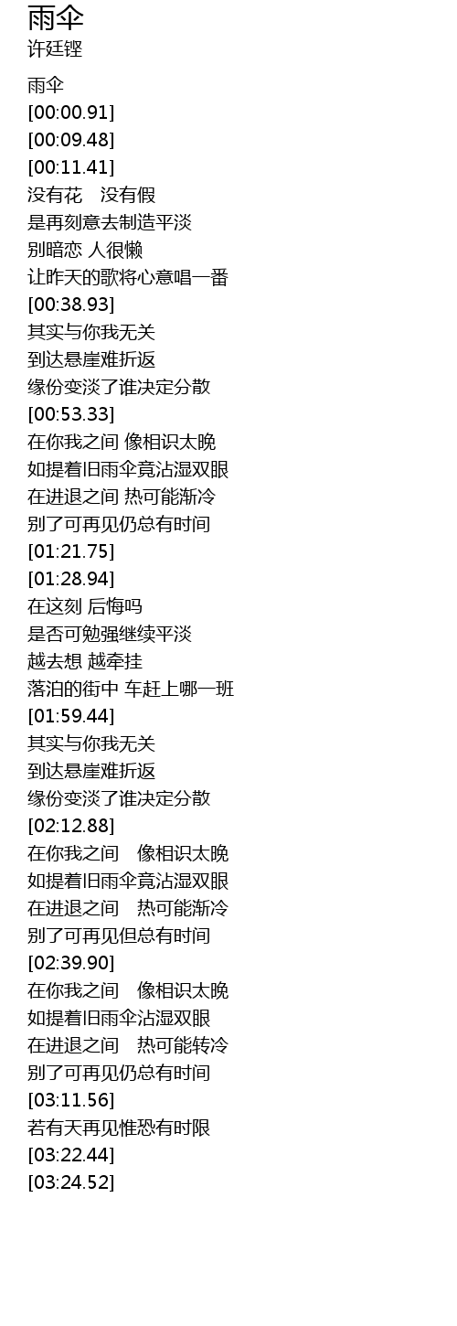 | [02:20.36] | 如提着旧雨伞竟沾湿双眼 |