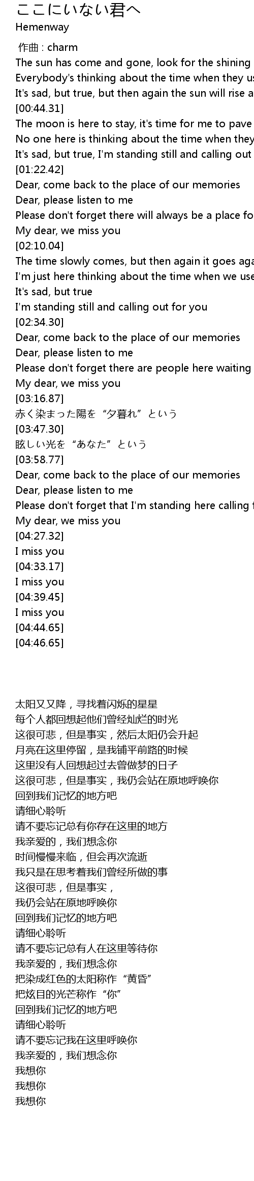 | [01:48.31] | Please don't forget there will always be a place for you here |