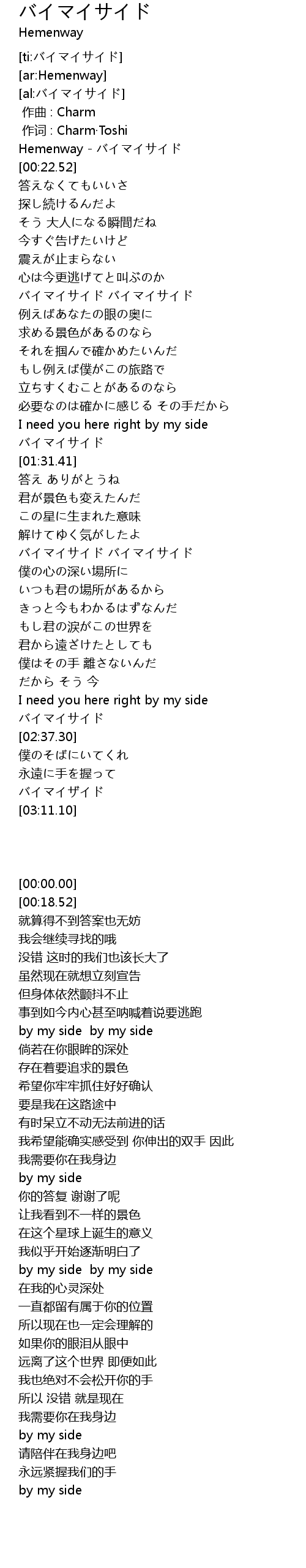 | [00:00.00] | Hemenway - バイマイサイド |