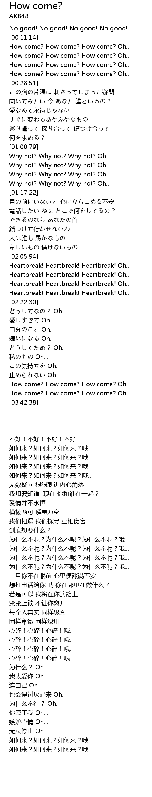 | [00:20.20] | How come? How come? How come? Oh… |