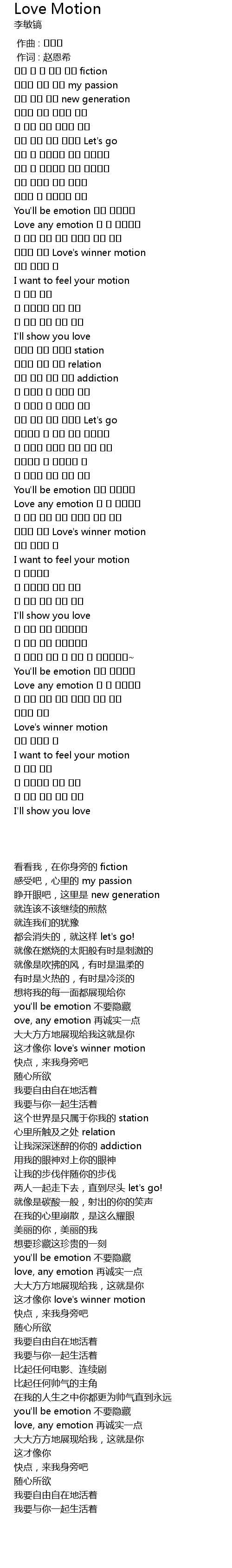 | 歌曲 | Love Motion |