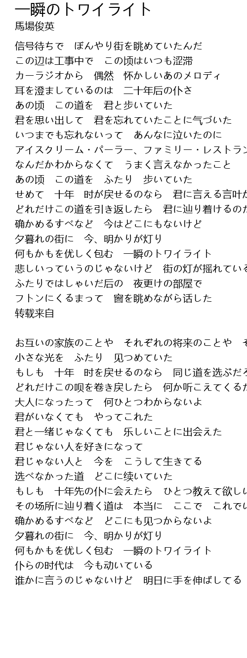 | 歌曲 | 一瞬のトワイライト |