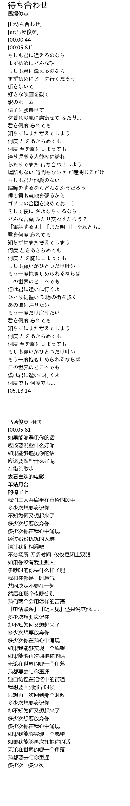 | [01:50.60] | ふたりでまた 待ち合わせしよう |