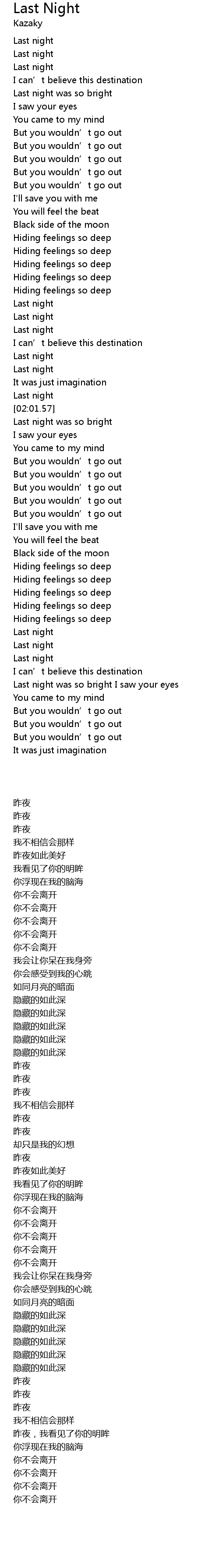 | [02:53.93] | 昨夜 |