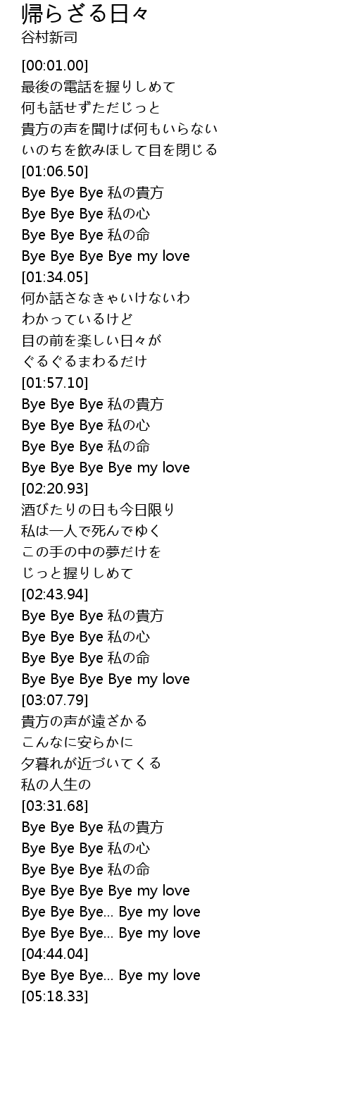 | [01:59.37] | Bye Bye Bye 私の貴方 |