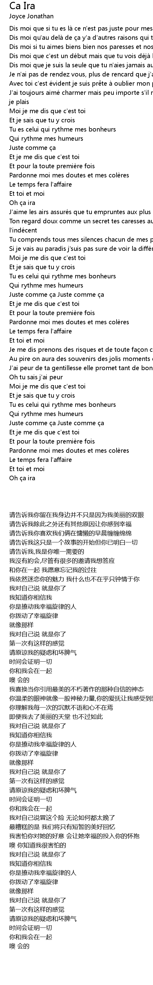 | [00:14.68] | Dis moi si tu aimes biens bien nos paresses et nos matins d'amoureux |