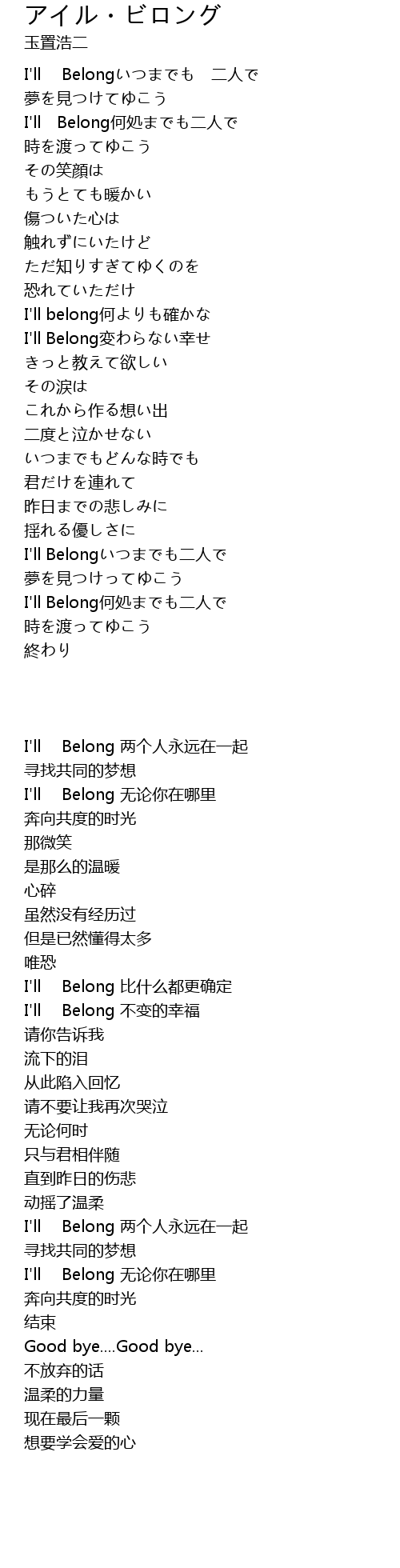 | [00:22.500] | I'll Belongいつまでも 二人で |