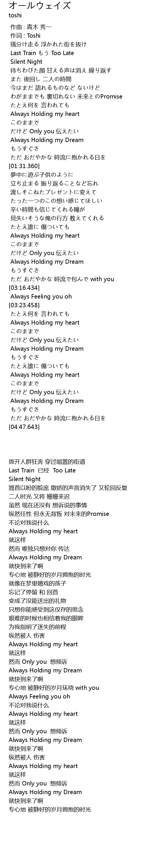 | [02:58.001] | Always Holding my Dream |