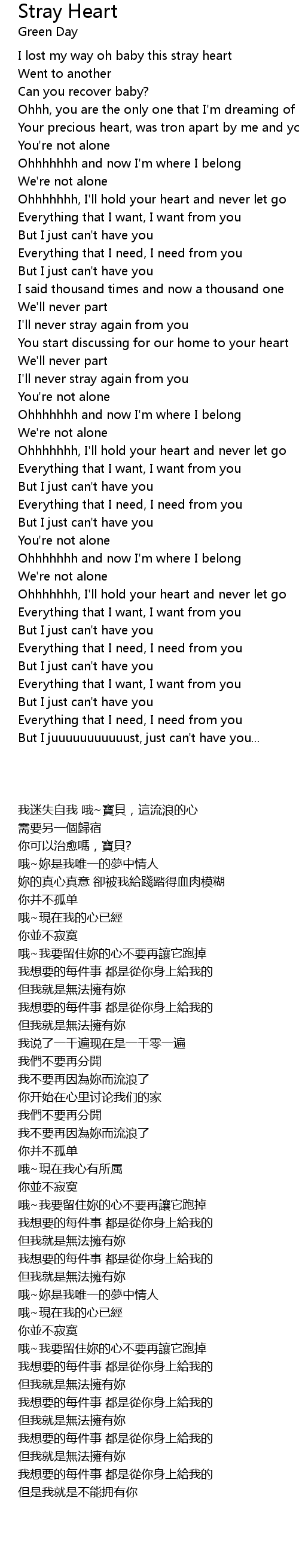 I lost my way oh baby this stray heart |