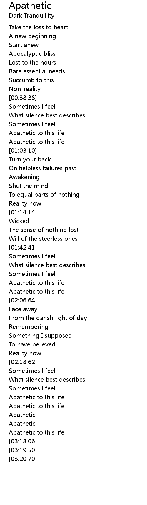 Apathetic to this life |