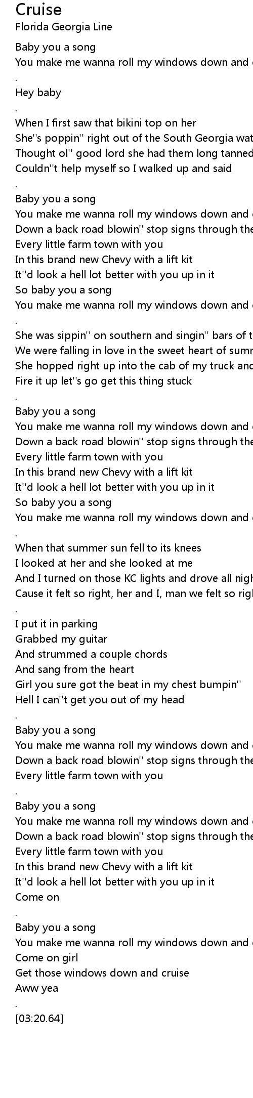 You make me wanna roll my windows down and cruise |