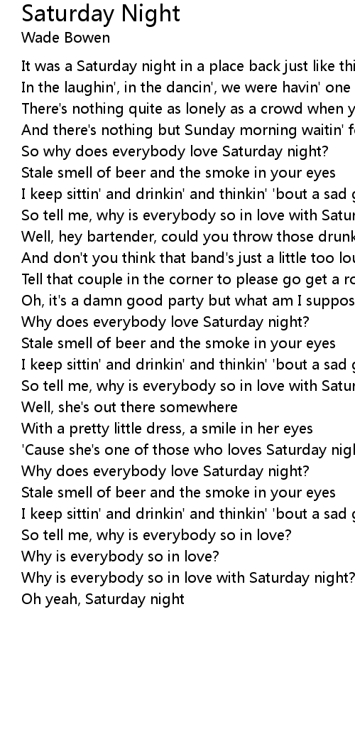 So why does everybody love Saturday night? |