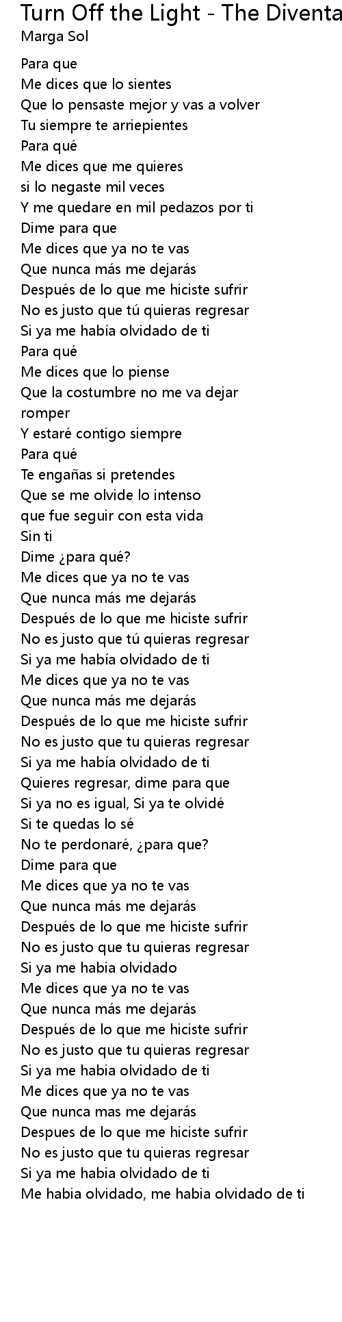 | 歌曲 | Turn Off the Light - The Diventa Project Mix |