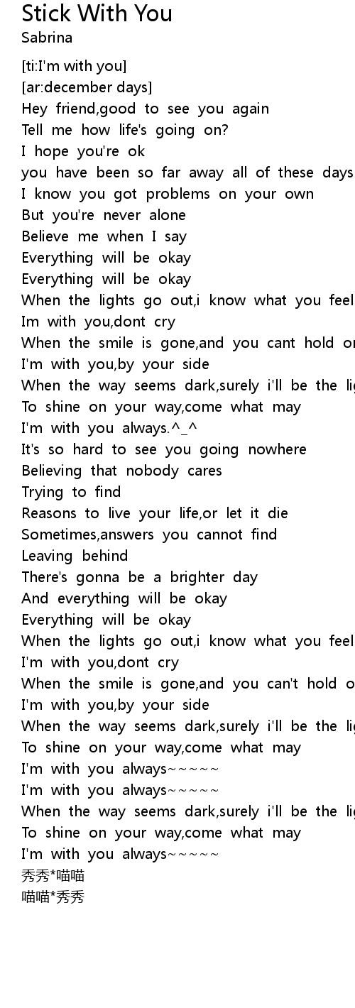 | [02:53.229] | I' m with you always |