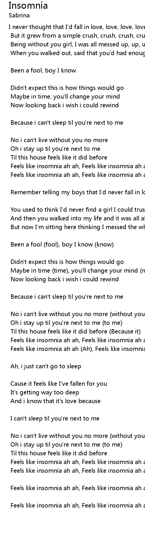 Feels like insomnia ah ah, Feels like insomnia ah ah |