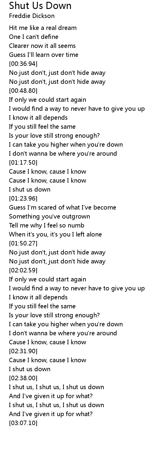 I shut us, I shut us, I shut us down |