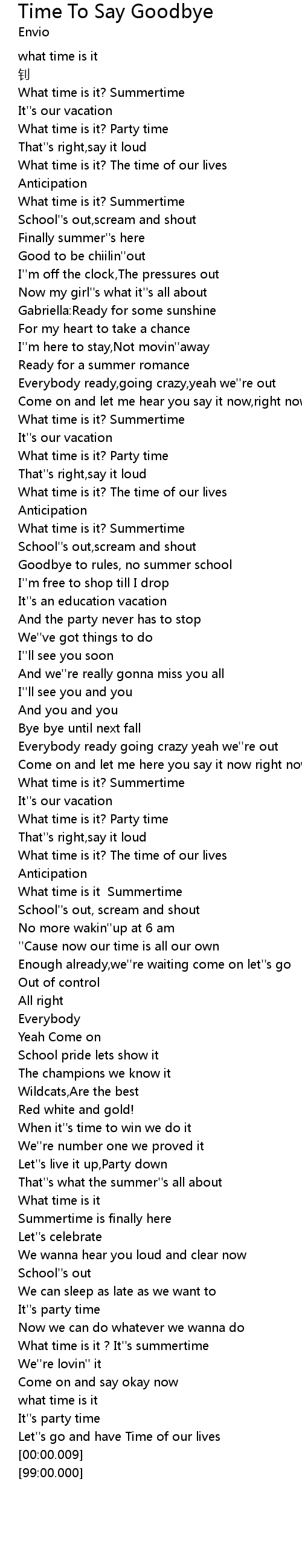 | [01:43.71] | What time is it Summertime |