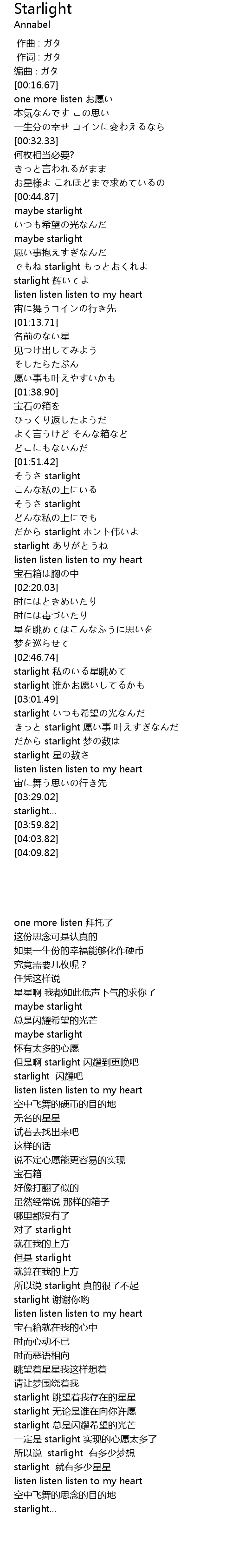 | [02:54.64] | starlight 谁かお愿いしてるかも |