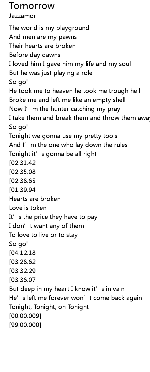 | [04:21.60] | Tonight, Tonight, oh Tonight |