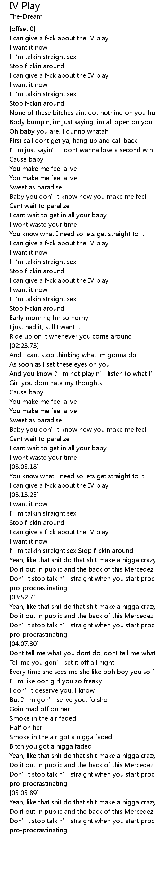 | [00:29.43] | I can give a f-ck about the IV play |