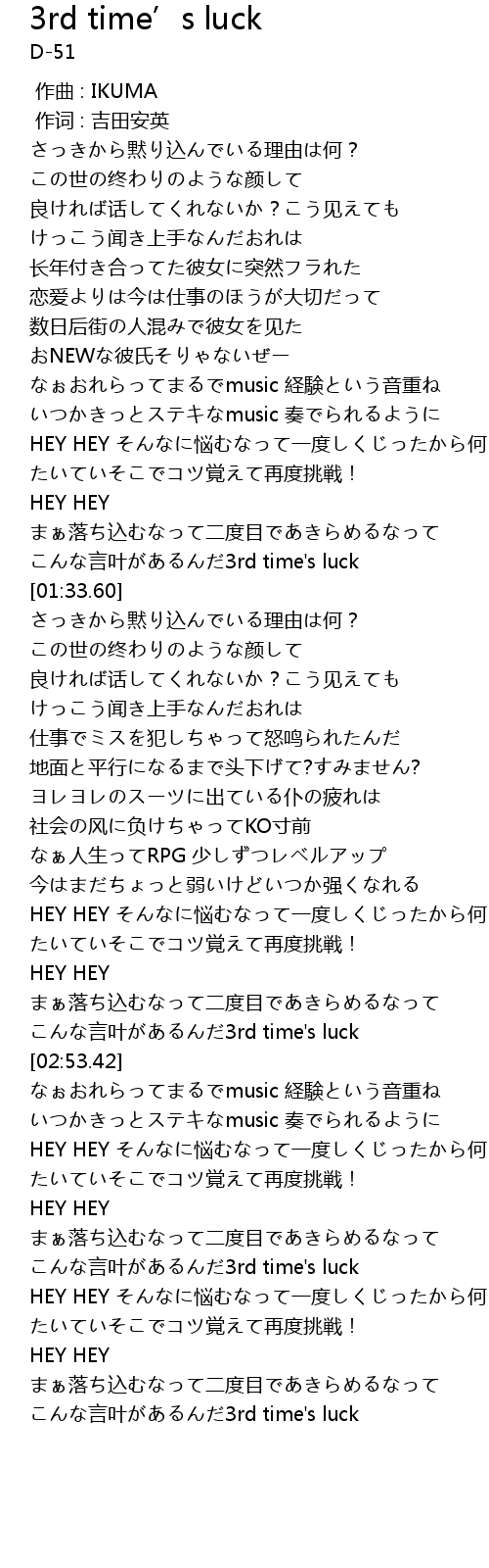 | [04:20.51] | こんな言叶があるんだ3rd time's luck |