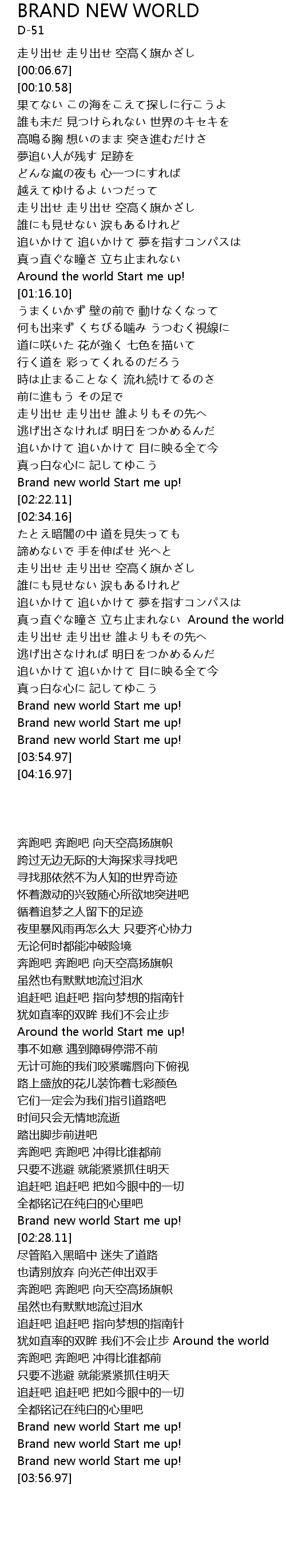 | [03:50.50] | Brand new world Start me up! |