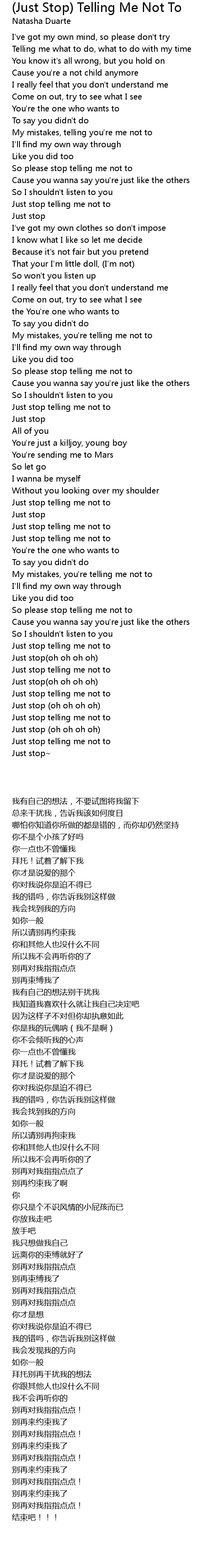 Just stop telling me not to |