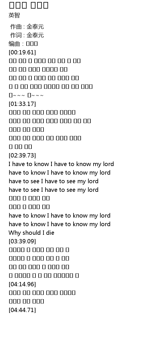 | [03:48.01] | 알려줘요 내 죽음이 갖게 될 영광 |