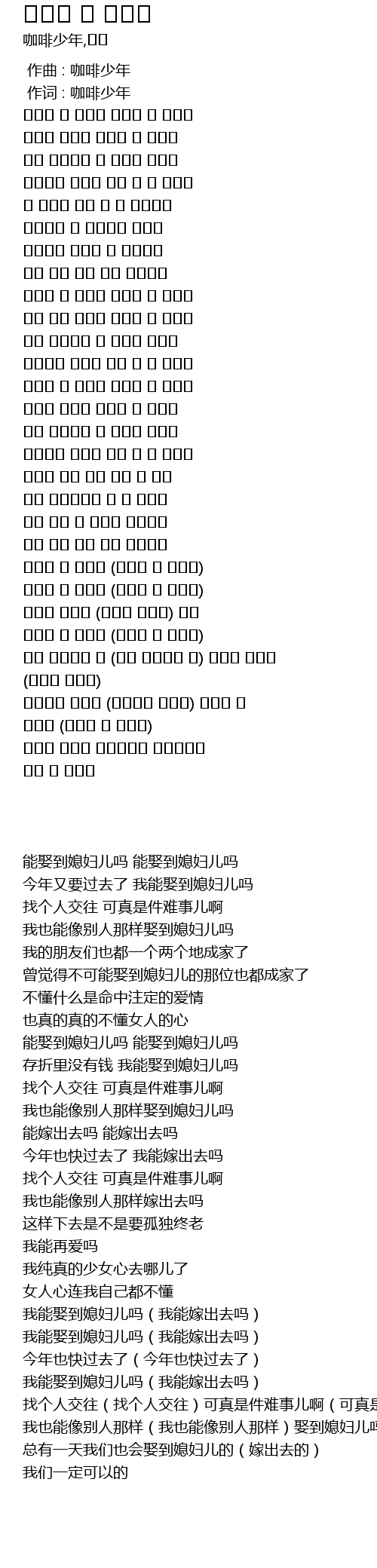 | [00:00.730] | 能娶到媳妇儿吗 能娶到媳妇儿吗 |