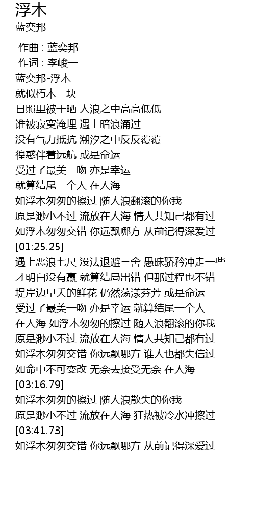 | [03:21.47] | 如浮木匆匆的擦过 随人浪散失的你我 |