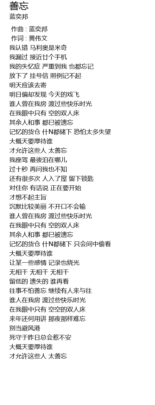 | [00:21.820] | 我的失忆症 严重到我 也都忘记 |