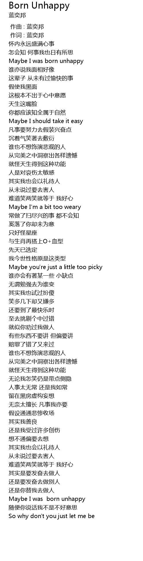 | [04:30.92] | Maybe I was born unhappy |