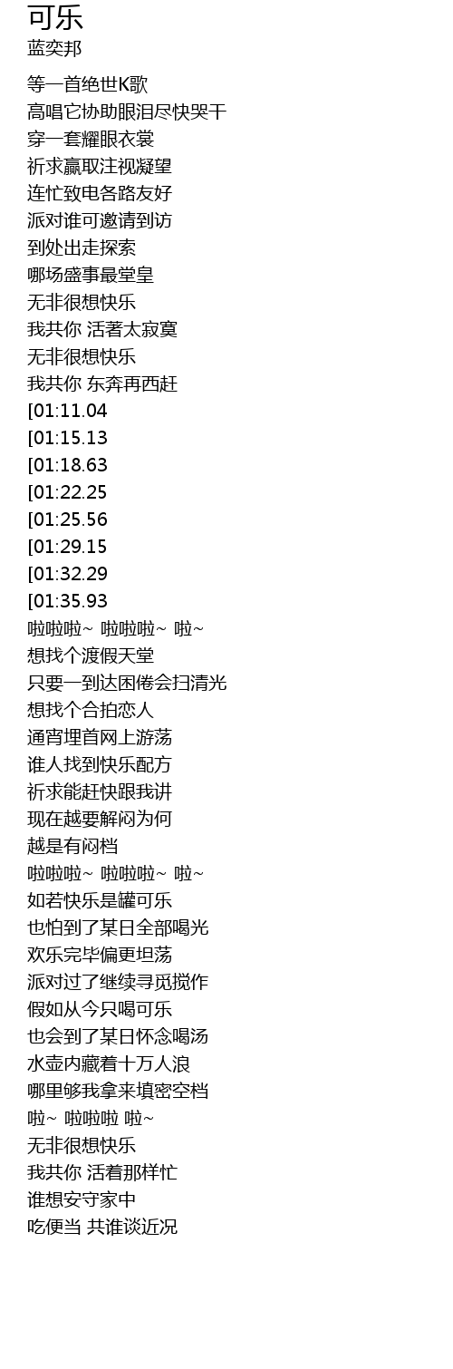 | [02:20.70][01:11.04] | 如若快乐是罐可乐 |