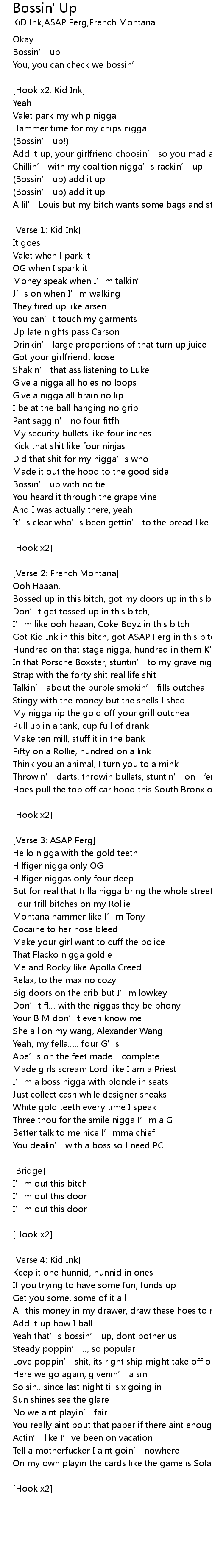 | Got Kid Ink in this bitch, got ASAP Ferg in this bitch | |