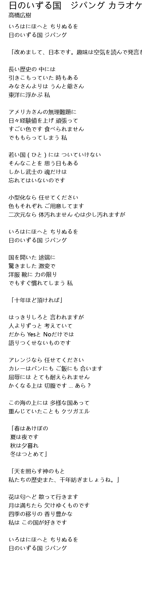 | 歌曲 | 日のいずる国 ジパング カラオケ |