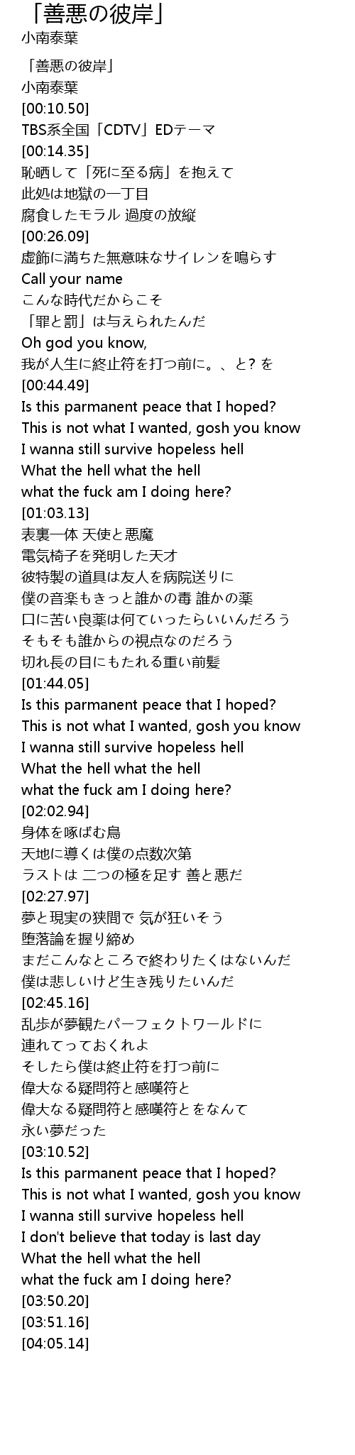 | [00:00.00] | 「善悪の彼岸」 |