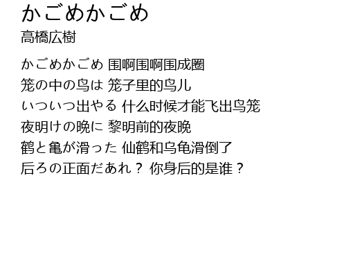 | 歌曲 | かごめかごめ |