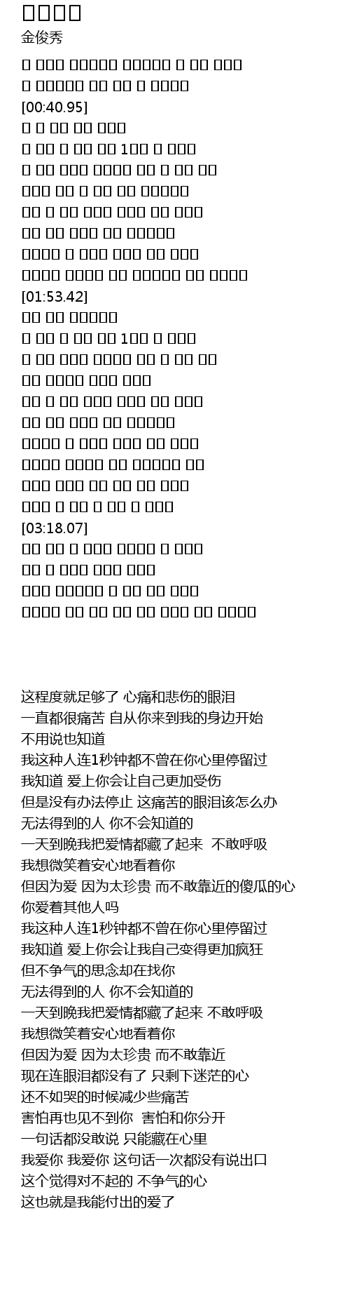 | [03:36.30] | 사랑해 사랑했어요 한 번도 못한 한마디 |