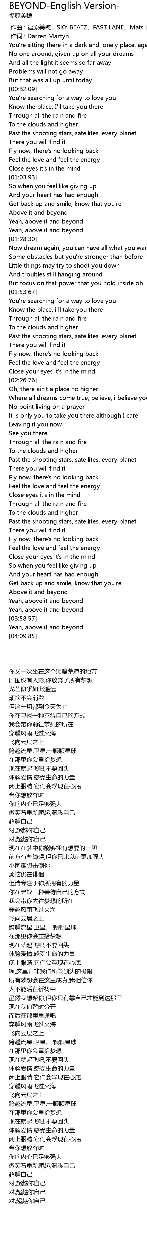 | [03:54.07] | Yeah, above it and beyond |