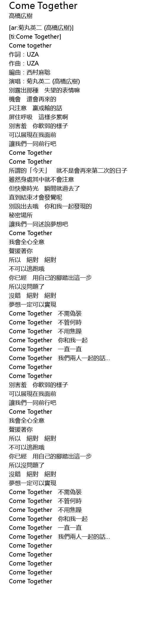 | [03:59.11] | Come Together 一直一直 |