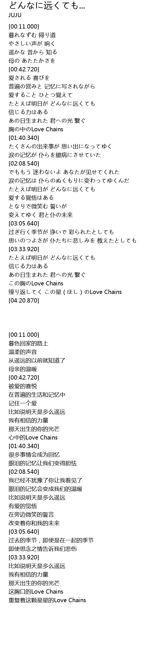 | [04:07.240] | 缲り返してく この星(ほし)のLove Chains |