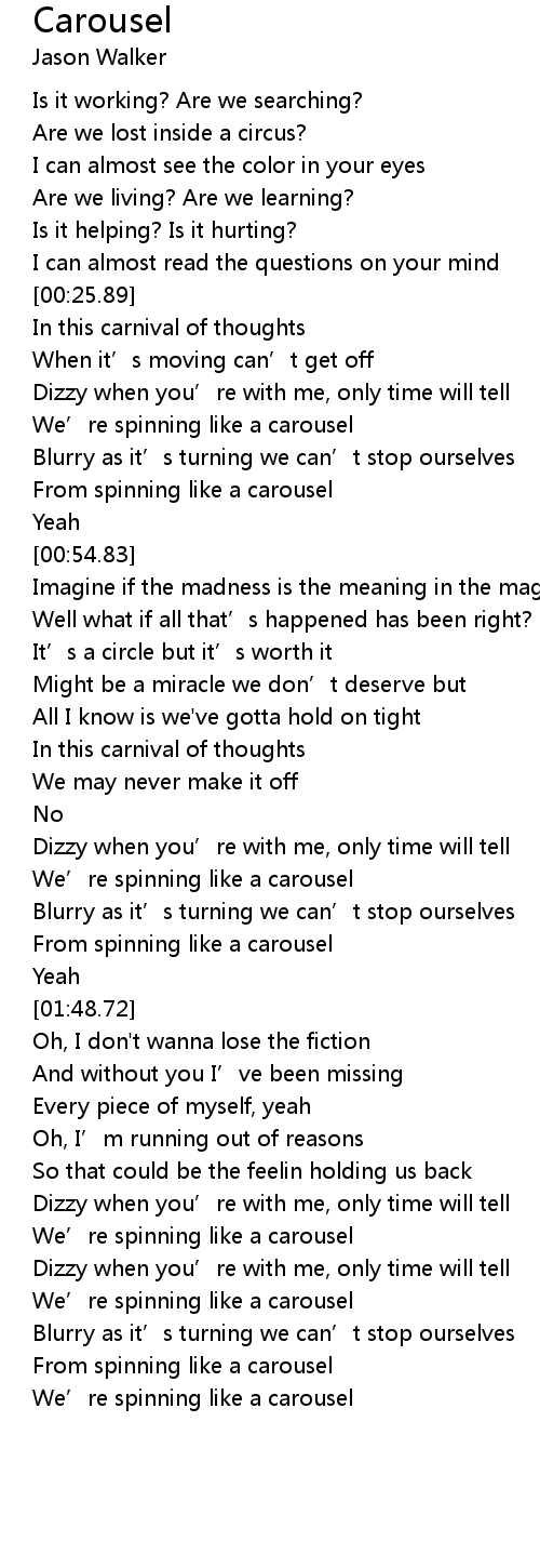 | [02:16.41] | We’re spinning like a carousel |