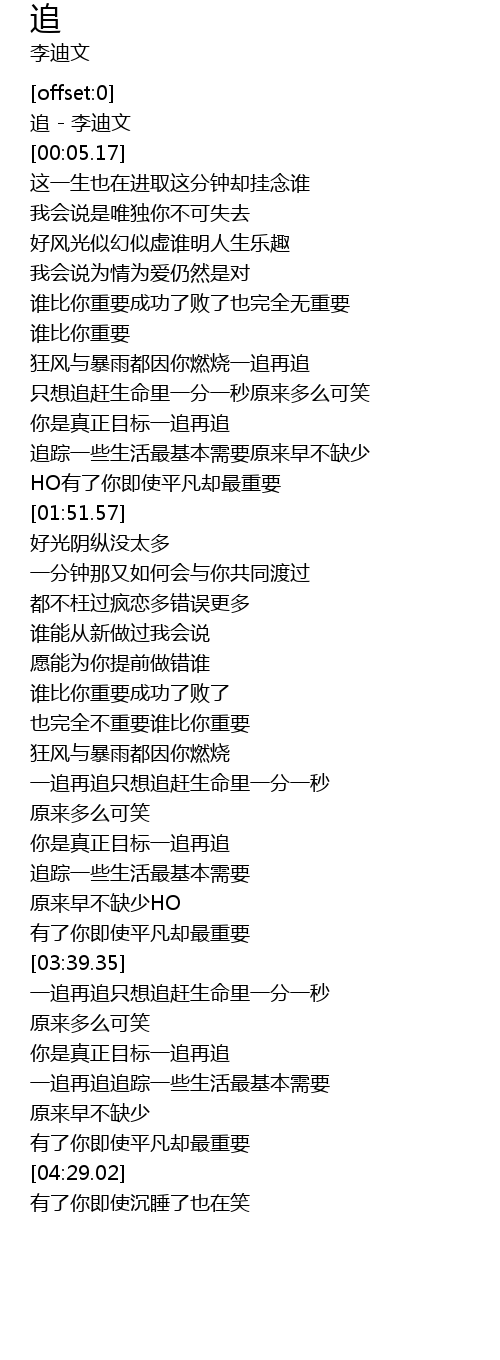 | [00:00.98] | 追 - 李迪文 |