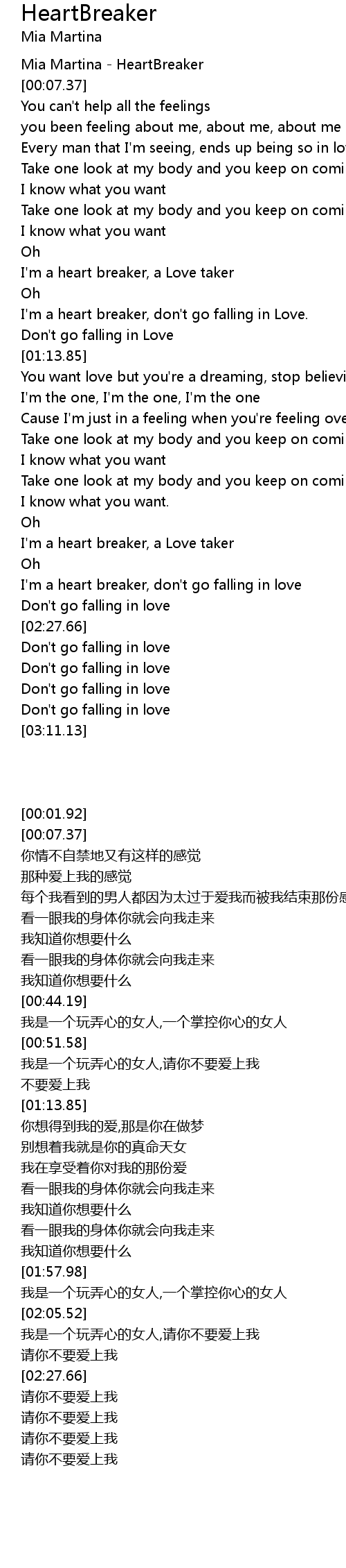 [00:01.92] Mia Martina - HeartBreaker