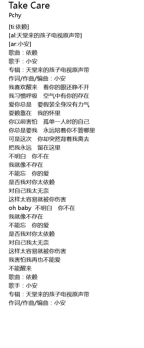 | [01:56.130] | zuò cí zuò qǔ biān qǔ: xiǎo ān |