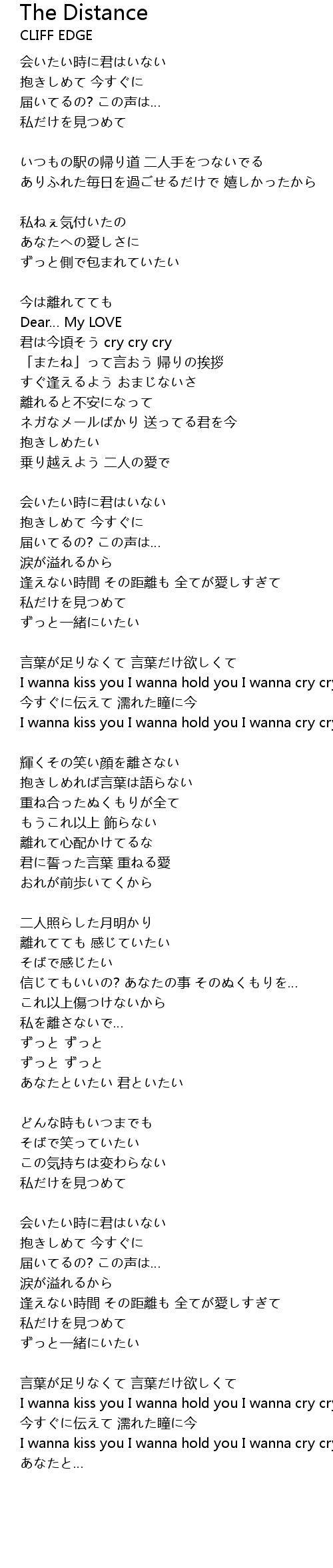 | 逢えない時間 その距離も 全てが愛しすぎて | |