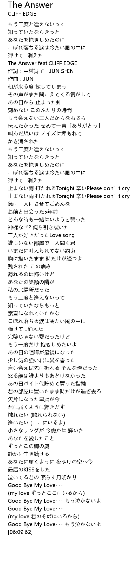 | [00:27.88] | The Answer feat.CLIFF EDGE |