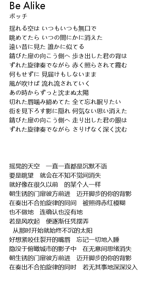 | [02:03.844] | あの時からずっと沈まぬ太陽 |