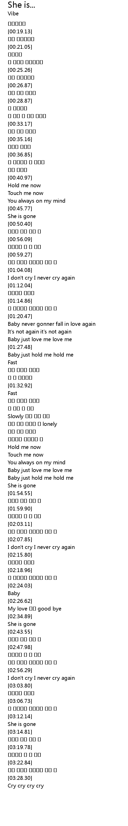 | [03:12.70] | She is gone |